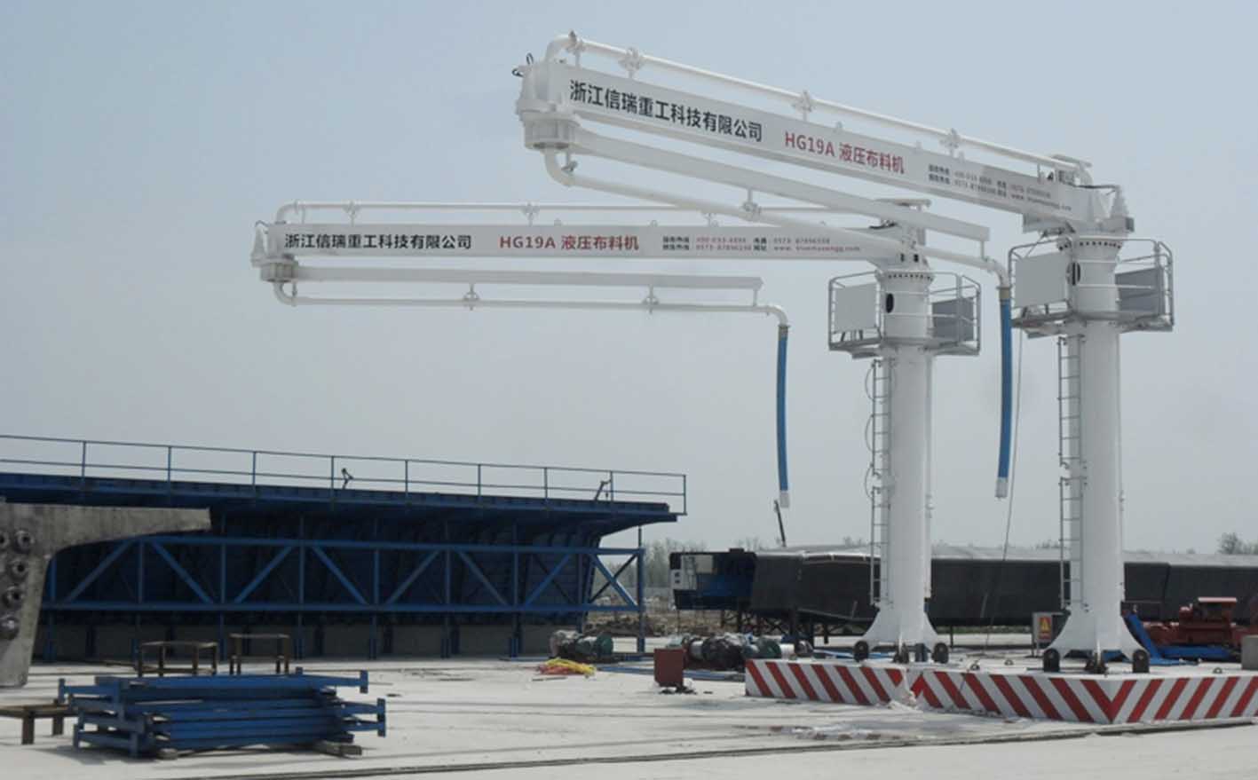 HG19AG固定式液壓布料機(jī)1.本產(chǎn)品為預(yù)制梁場專用布料機(jī),臂架為輕量化設(shè)計,兩節(jié)臂水平旋轉(zhuǎn),全液壓驅(qū)動,結(jié)構(gòu)簡單,操作方便。2.圓柱式塔身,承載力強(qiáng),晃動小,還配備平臺爬梯及欄桿,便于檢修設(shè)備保養(yǎng)。3.主要電氣、液壓元器件采用國內(nèi)外知名品牌,性能穩(wěn)定。4.基礎(chǔ)連接型式有預(yù)埋支腿式、預(yù)埋螺栓式等,并且可根據(jù)用戶工地的實際情況,非標(biāo)設(shè)計,滿足了用戶不同的需求。5.可移動式基礎(chǔ),可整機(jī)整體移位,無需拆